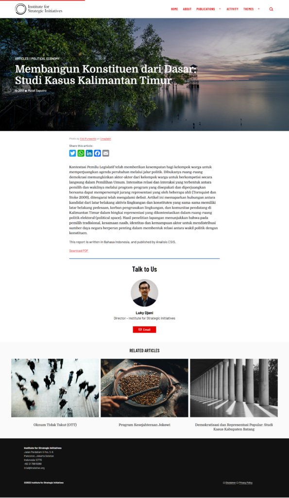 Redesigned the website for Institute for Strategic Initiatives, an Indonesian thinktank and research institute based in Jakarta (insistive.org) using WordPress.